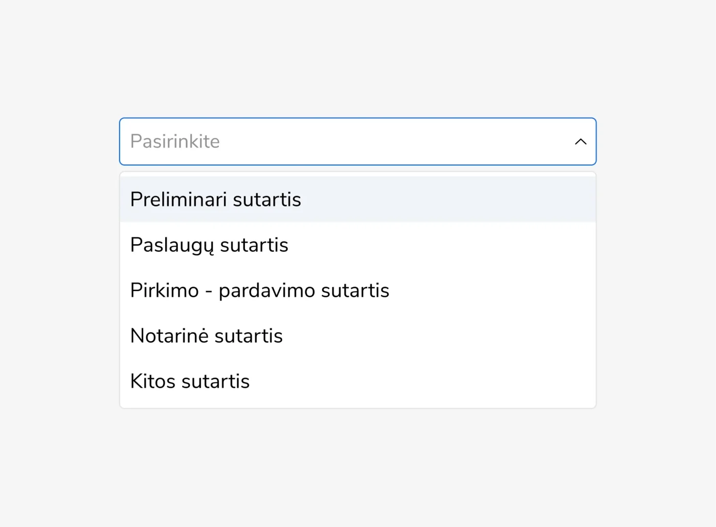 Sukurkite savo dokumentų tipus: paslaugų sutartis, preliminari sutartis, notarinė sutartis. Filtruokite ir rūšiuokite pagal tipus.