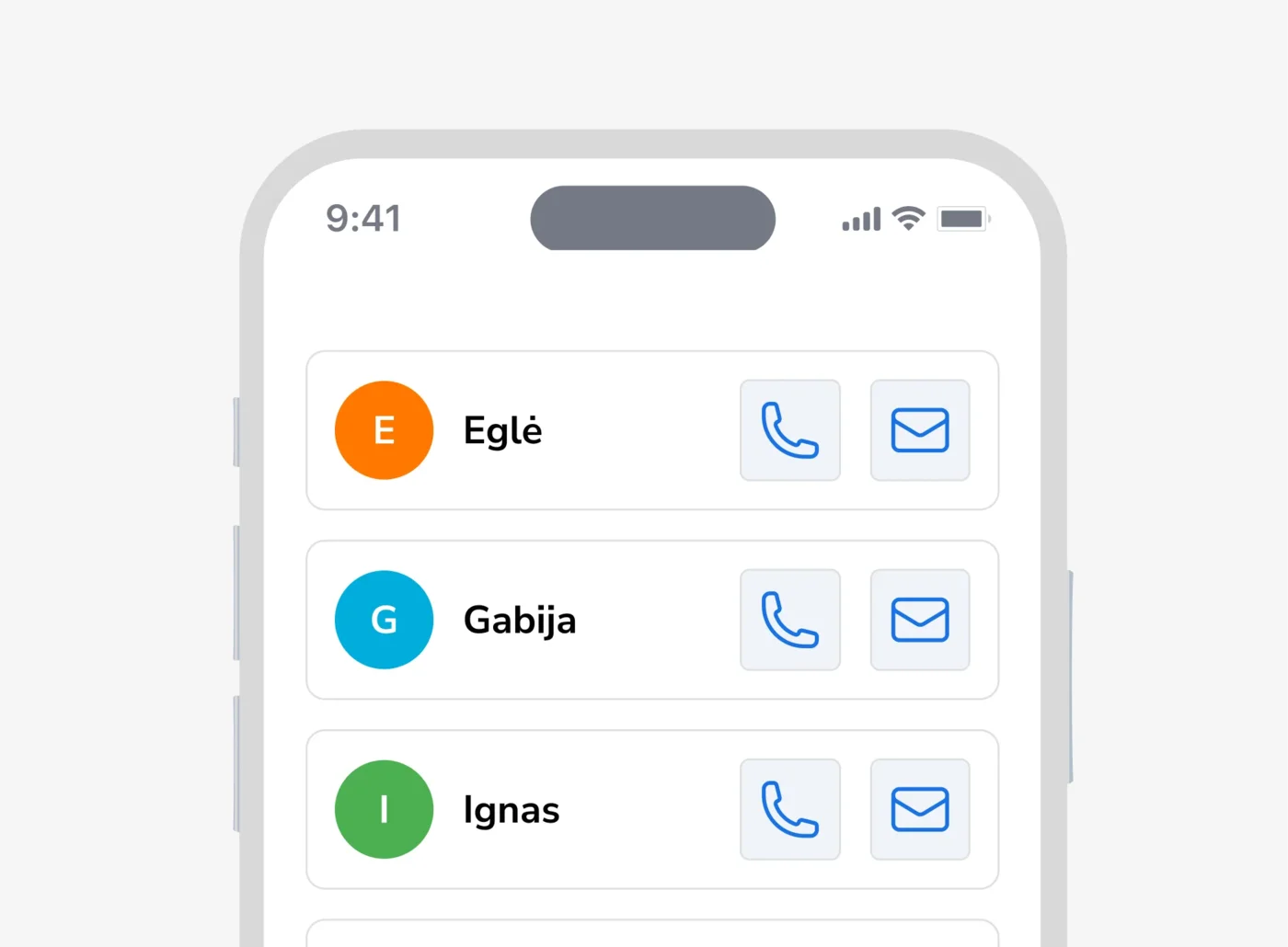 Priskirkite kontaktus grupėms ir lengvai filtruokite, kai reikia.