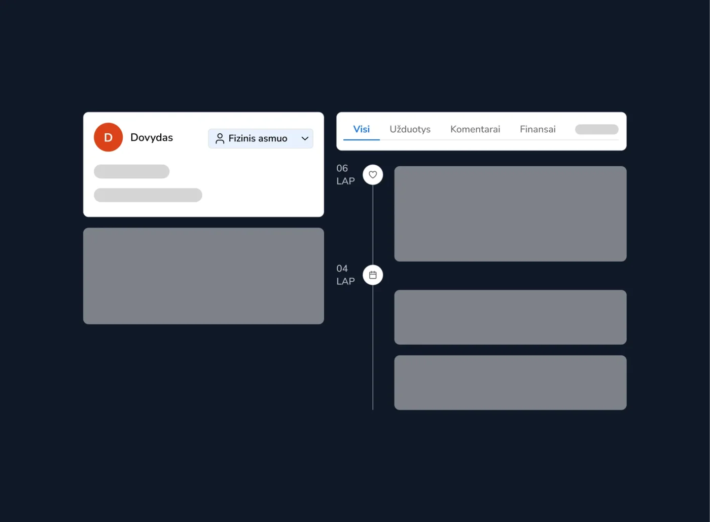 Kontaktai, bendravimo istorija, dokumentai ir sandoriai – viskas susieta ir lengvai pasiekiama.