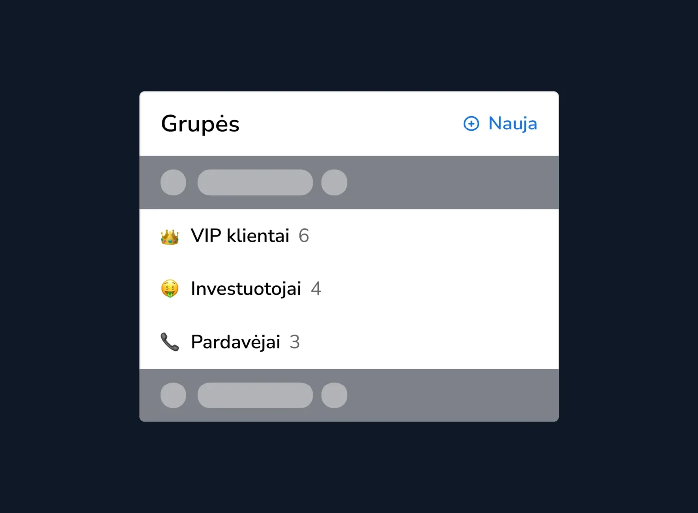 Sukurkite kontaktų grupes pagal savo poreikius: VIP klientai, investuotojai, pardavėjai, pirkėjai.