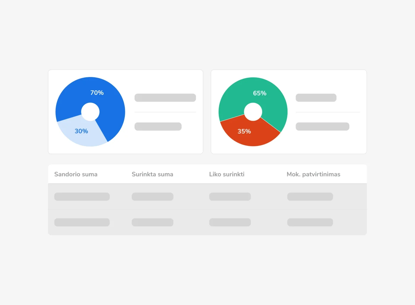 Stebėkite visas pajamas: surinktą sumą, likusią surinkti sumą ir mokėjimų patvirtinimus.